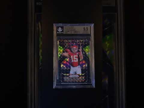 Absolutely stunning Patrick Mahomes rookie card on the market this month. How does one not instantly fall in love with this masterpiece? Offered here is an all too rare and important '17 Panini Instant Impact Black Finite Prizm parallel in an elite Beckett 9.5 holder. This hypersensitive issue is flawless with zero scuffs, indents or other imperfections present to the fragile surfaces. The periphery is void of blemishes, the corners are perfectly formed and the centering is GEM MINT. In addition, the unique design is breathtaking with glowing color and precise registration. Mahomes is leading the next wave of elite QB's with his superhuman skills and elite brand. As Mahomes continues to succeed and most likely win multiple championships, this card seems positioned for a tremendous return on investment. A tremendous fine-art equivalent piece which is deserving of only the best modern day portfolio. Comes highly recommended by PWCC. One of over 22,000 cards, lots and sets up for bid in our 1st Auction of 2021. Click on the link above to view the other PWCC auction lots.