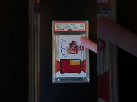 Description: For those in the market for a truly elite and imperative Patrick Mahomes II rookie card, look no further. What we have here is an ultra rare Green RPA parallel which ranks among his most elusive and highly prized productions. Unlike the traditional National Treasures RPA, the Green parallel is much more difficult to obtain and possesses an exceedingly fragile emerald green foil inlay which is commonly plagued by scuffs and/or chipping. A truly glowing and visually appealing example is far too rare with only fifteen copies produced. The offered #7/15 lies within a strong PSA 9 holder, showcasing beautiful eye appeal for the grade assigned. Almost dead centered with MINT corners and card stock. Shows high-gloss with a beautiful foil inlay which borders a impressive 3-color jersey piece, sporting a solid break and traditional Chiefs colors: Red, Yellow and White. Furthermore, the autograph is penned in blue ink and shows signs of being pristine. Mahomes continues to push the limits of modern day athletes with his electrifying skills and elite brand. What will be the value of this premier RPA if Mahomes continues this type of success for multiple seasons? What if he wins even more MVP's and Super Bowls? The sky's the limit for this incredibly talented young phenom. An all-around stunning investment card of an athlete who's future is extremely bright, as is the future ROI on this world-class piece. Comes with PWCC's highest recommendation. Please see the video highlight for more details on this masterpiece. One of over 22,000 cards, lots and sets up for bid in our 1st Auction of 2021. Click on the link above to view the other PWCC auction lots.