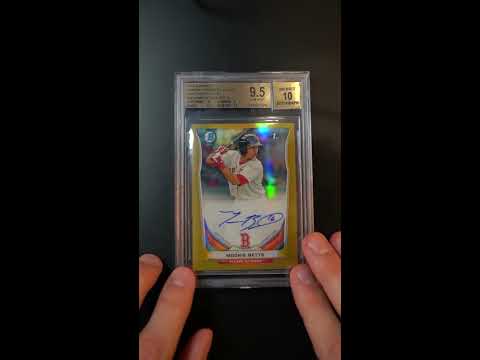 Here it is, the all too important and highly coveted Gold Refractor rookie card of the reigning World Series Champ. In the realm of modern day investment pieces, the Gold Refractor parallel holds a special lure among investors with its elegant colors and limited print run; one of just fifty. The idea that only a handful of people ever get to say they have obtained one of these scarce pieces creates a unicorn like presence that is special to the trading card marketplace. Even the most novice of investors can appreciate what these elite parallels have brought to the market. Offered here is a remarkably pretty #21/50 example which dazzles in every way. The fragile surfaces are void of any typical refractor lines or imperfections with radiant color and crystal clear imagery. The card is perfectly symmetrical with beautiful gold borders and faultless edges which surround a great batting shot of Betts. Furthermore, what caps of this amazing card is the on card blue ink autograph which has been awarded the illustrious '10' grade from Beckett. Betts has established himself as an elite star in the MLB, capturing 2x World Series, 5x Gold Gloves, as well as winning multiple batting and defensive awards. Coupled with an elite brand and a highly talented Dodgers teams, he should continue to help lead the Dodgers to even more World Series appearances. A critically important offering which comes highly recommended by PWCC. Enjoy. One of over 20,000 cards, lots and sets up for bid in our 12th Auction of 2020. Click on the link above to view the other PWCC auction lots.