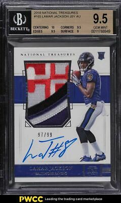 2018 NATIONAL TREASURES LAMAR JACKSON ROOKIE RC PATCH AUTO 99 165 BGS 9 5 GEM