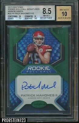 2017 CERTIFIED ROOKIE ROLL CALL MIRROR GREEN PATRICK MAHOMES RC 3 3 10 AUTO BGS